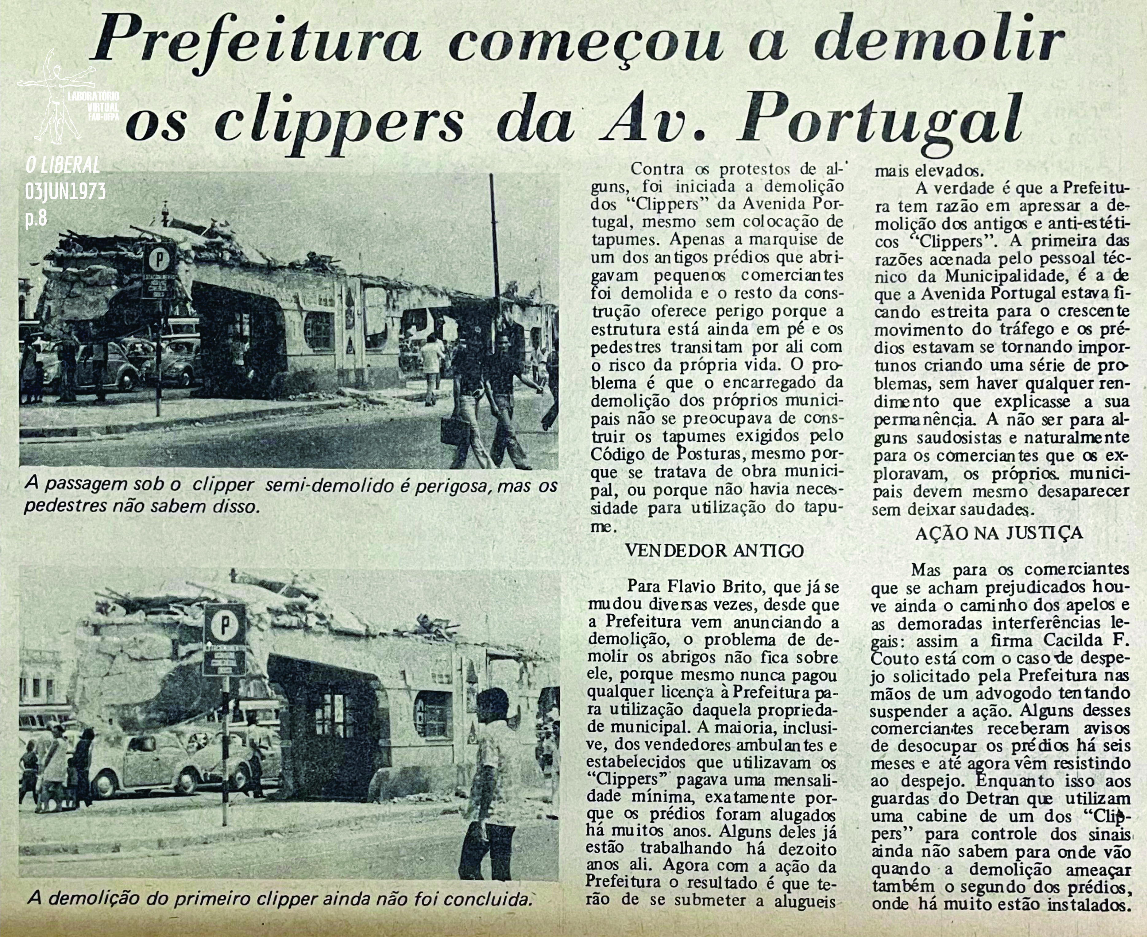 Em sua página oito, publica O Liberal de 03 de junho de 1973: Prefeitura começou a demolir os clippers da Av. Portugal.