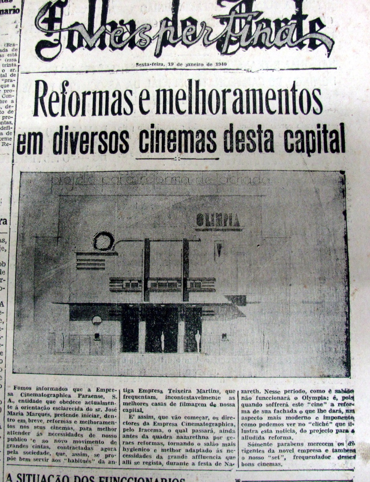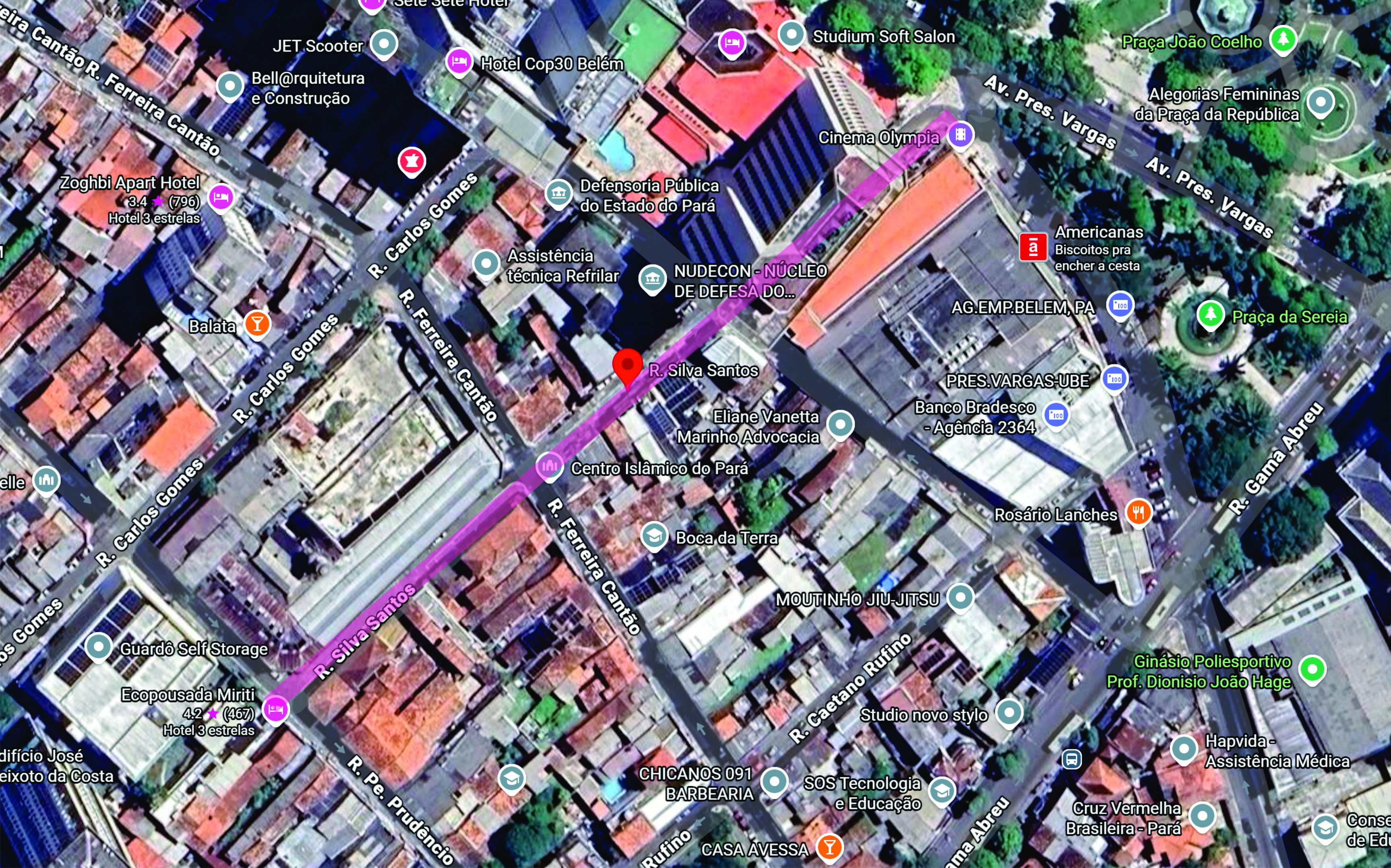 A rua oficialmente nomeada como SILVA SANTOS JUNIOR (antes Macapá) tem confluência com a atual Presidente Vargas e a Arcipreste Manoel Teodoro separando o OLYMPIA do Princesa Louçã, espaço antes ocupado pelo Grande Hotel – mais para trás: POLYTHEAMA.