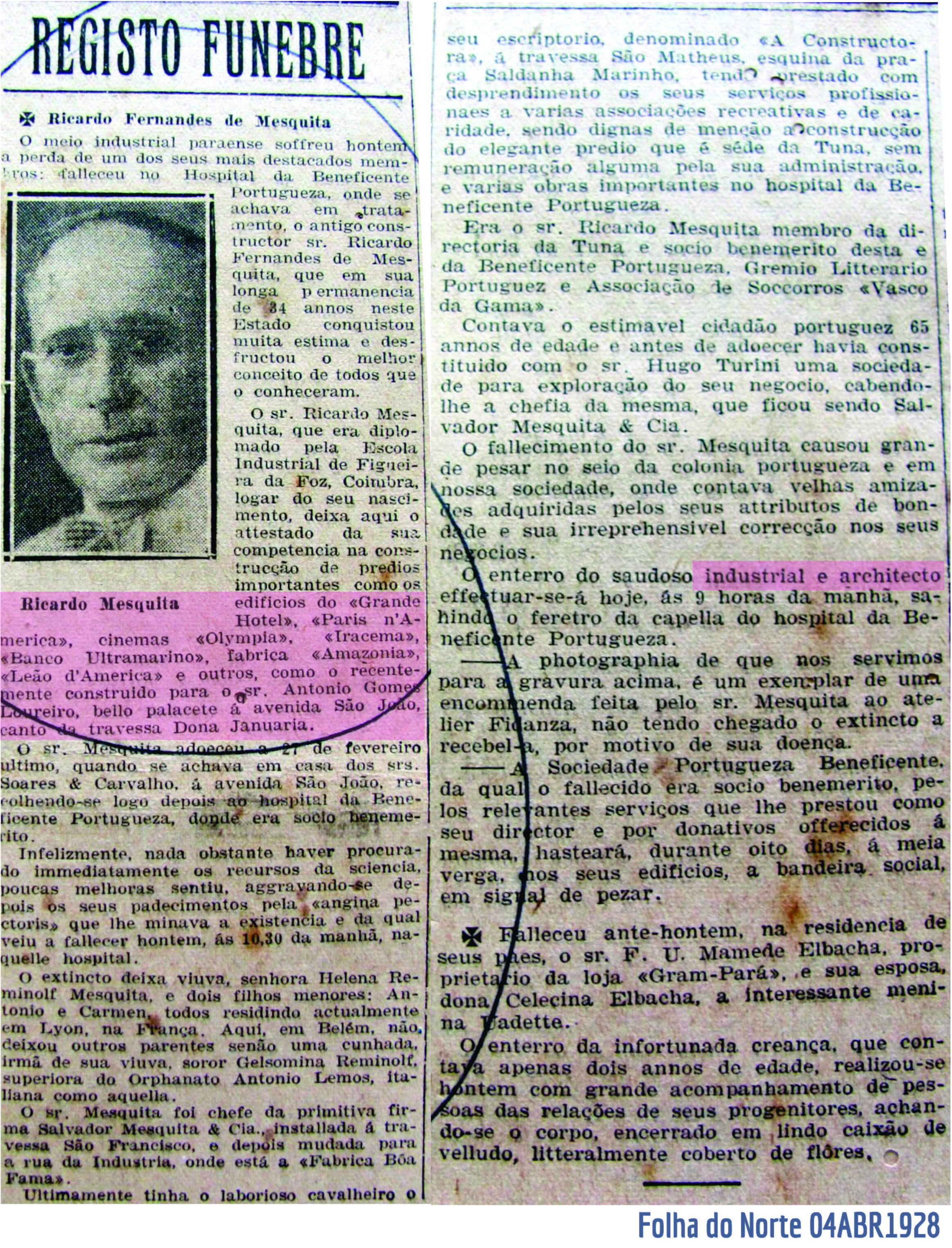 O português Ricardo Fernandes de Mesquita, segundo o jornal Folha do Norte de 04ABR1928, era arquiteto diplomado pela Escola Industrial de Figueira da Foz (Coimbra) e a ele são atribuídas obras, além do Olympia e do Grande Hotel: o Paris n’America, o Cinema Iracema, o Banco Ultramarino, a Fábrica Amazônia, o Leão d’America, o Palacete Antonio Gomes Loureiro e a sede da Tuna.
